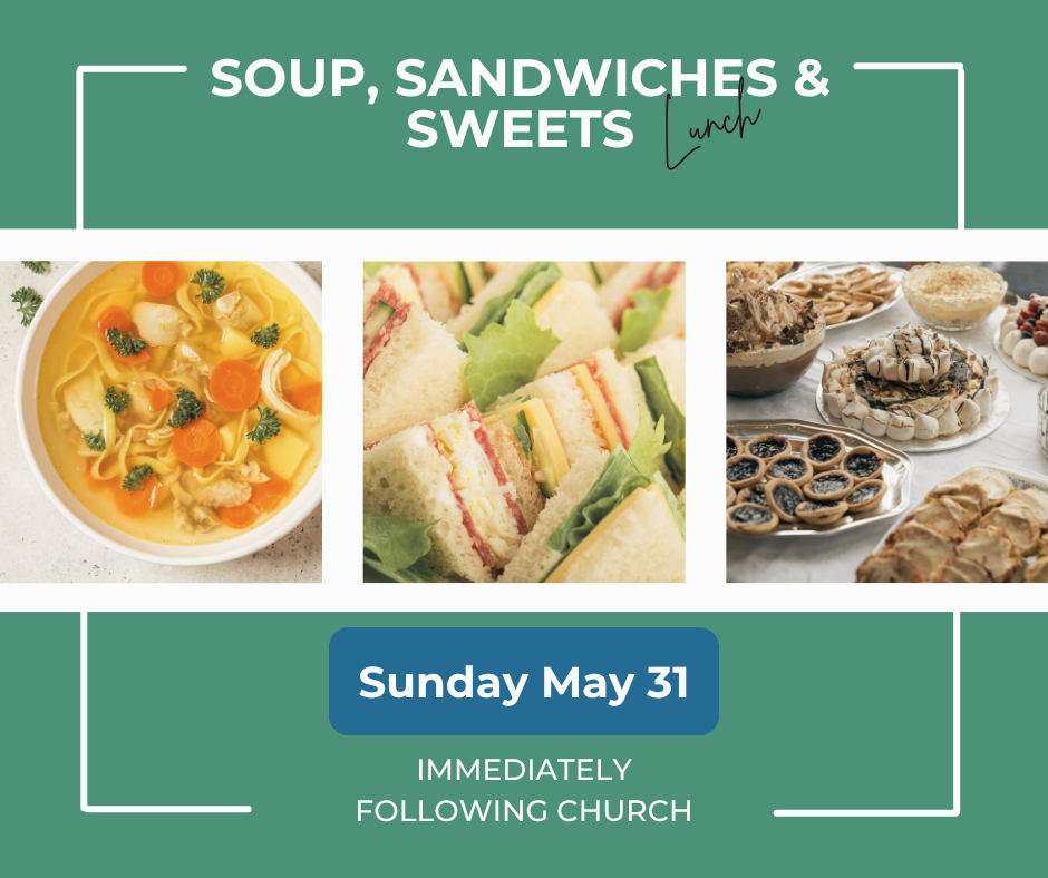 Join us on Sunday May 31st for our church service at 9.30am followed by a shared lunch as we chat, laugh and fellowship together.